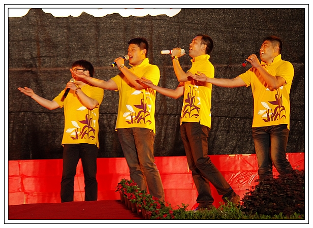 晚會(huì)在大合唱《咱們工人有力量》歌聲中拉開帷幕,麗汽集團(tuán)各二級(jí)單位組織的12支演唱隊(duì)伍依次上臺(tái),分別參加大合唱組和小組唱組的比賽??炜凸具x送的《天路》、南明賓館選送的《打起手鼓唱起歌》分別獲得大合唱組和小組唱組的一等獎(jiǎng)客運(yùn)西站選送的《團(tuán)結(jié)就是力量》、集團(tuán)公司機(jī)關(guān)選送的《我和我的祖國(guó)》分別獲得大合唱組和小組唱組的二等獎(jiǎng)。