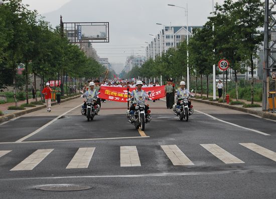 健步走隊伍在麗水市委書記陳榮高的帶領下,從濱水公園出發(fā),沿著花園路-囿山路-宇雷路-江濱路返回濱水公園,盡管活動開始后不久,天空就下起了小雨,但是這絲毫沒能阻擋大家的熱情,隊伍冒雨堅持走完了全程。到達終點后,大家在印有麗水市“全民健身日”暨萬人健步走活動的橫幅上簽字。