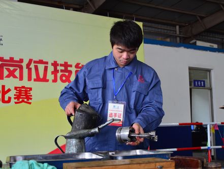 11月28日上午8點半,客車維修操作比賽在快客分公司修理車間首先開賽了。客長運分公司、快客分公司各選派出4名參賽人員。比賽的要求是比賽人員分別在30分鐘的時間里,完成單缸活塞連桿組的拆裝與測量,即熟練拆開汽缸筒活塞連桿組和活塞三道環(huán),接著用工具進行仔細檢查和測量,同時填寫了檢查測量記錄表,最后裝復。8名參賽人員逐一展開技能比武,看誰能在規(guī)定時間內(nèi)又快又好地完成比賽內(nèi)容,再以完成的質(zhì)量和操作用時短決出實際操作成績。因為還未理論考試,所以,昨天的比賽不能評出總成績。