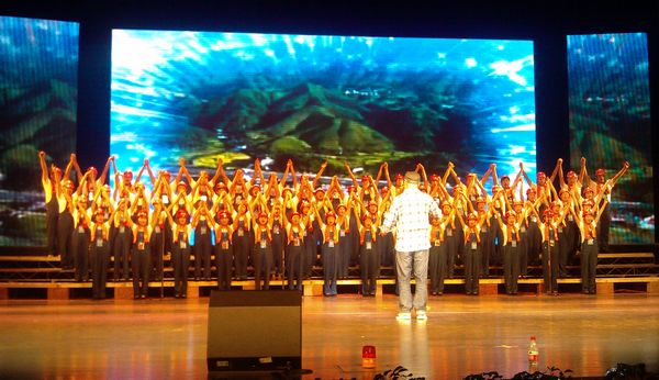 集團(tuán)公司合唱隊(duì)為本次頒獎(jiǎng)晚會送上一曲大合唱《咱們工人有力量》。