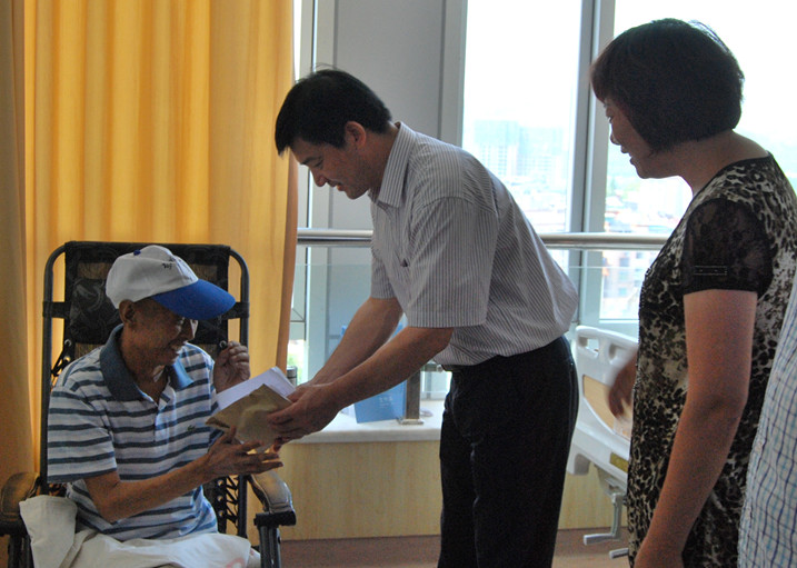 7月25日集團(tuán)公司黨委副書記、副總經(jīng)理薛和有、工會主席呂麗君專程前往醫(yī)院看望慰問了張紅太,并帶去了全公司738位員工為其捐贈的愛心款28060元。