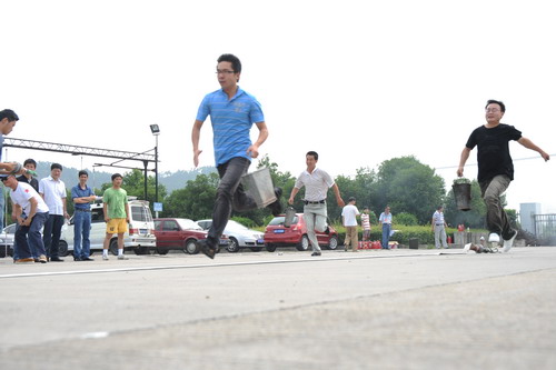各分公司、子公司的11支義務(wù)消防隊(duì)參加了消防接力比賽。經(jīng)過角逐,集團(tuán)本部、伊翔公司、客運(yùn)東站分獲比賽前三名。