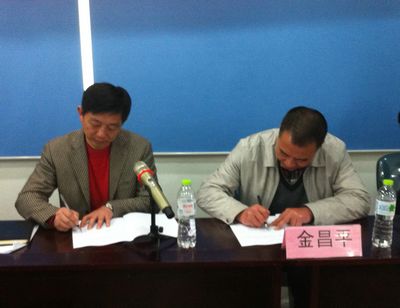 集團(tuán)公司常務(wù)副總何赤詮與金副處長(zhǎng)簽訂安全生產(chǎn)責(zé)任書