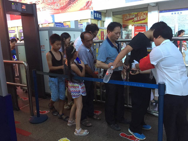 活動(dòng)第一天,佩戴志愿者紅袖章的同志已經(jīng)穿梭在車站的各個(gè)角落,熱情的為來往旅客服務(wù)。在售票大廳,為旅客介紹客車的運(yùn)行班次,引導(dǎo)幫助旅客使用自助售票機(jī)購票;在服務(wù)總臺,為未帶身份證的旅客辦理信息登記工作;在安檢口,積極督導(dǎo)旅客進(jìn)行人物分離安檢,維持排隊(duì)秩序;在候車大廳,為旅客提供免費(fèi)防暑涼茶,宣傳客車服務(wù);在長途班車檢票口,幫助不熟悉實(shí)名檢票的旅客順利檢票通過。