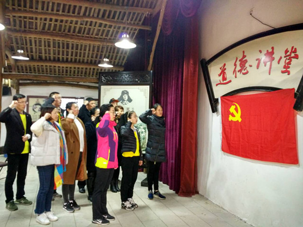 在卻金館導(dǎo)游朱勇華為我們講了“何文淵做知府”的廉潔故事 , 全體黨員向黨旗莊嚴地舉宣誓,再一次重溫入黨誓詞,黨員進行2016年度下半年先鋒考評表。