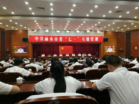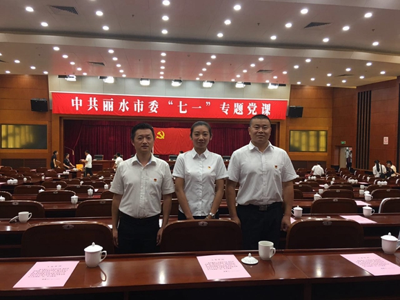 為迎接黨的96周年華誕,2017年6月27日上午,中共麗水市委組織部在市行政中心130報告廳組織開展了一次生動的“七一”專題黨課視頻會議,麗汽集團新黨員代表章雙林、莫森、葉珂應邀參加黨課學習,和現(xiàn)場60名余名參加儀式的新黨員在黨旗前莊嚴承諾。