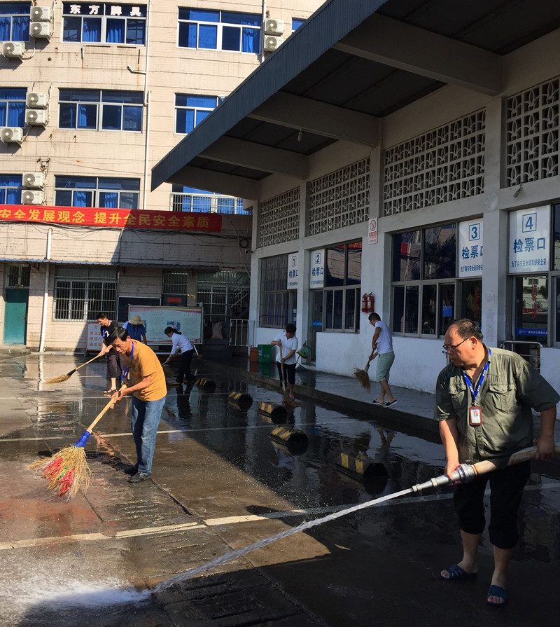 為了迎接24日至26日省專家的文明城市檢查,7月22日下午3時,東站黨員骨干志愿者們頂著41度的高溫,在江小華書記的帶領下,主動放棄休息時間,帶著消防水帶、掃把等工具,對發(fā)車區(qū)進行了徹底的清洗。