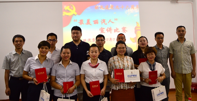 為了深化“最美麗水人”主題實踐活動,深入挖掘麗汽黨員員工在實施企業(yè)轉(zhuǎn)型升級、創(chuàng)業(yè)創(chuàng)新發(fā)展等重點工作中敢于攻堅破難、敢于擔(dān)當(dāng)實干的先進(jìn)事跡和先進(jìn)人物,進(jìn)一步弘揚麗汽“最美”精神,向黨的十九大獻(xiàn)禮,7月25日晚,麗汽集團(tuán)黨委、工會、團(tuán)委聯(lián)合組織開展了“最美麗汽人”主題宣講比賽。來自麗汽集團(tuán)及下屬單位的16名選手參加角逐。麗汽集團(tuán)黨委委員、工會主席、團(tuán)委書記等擔(dān)任評委。