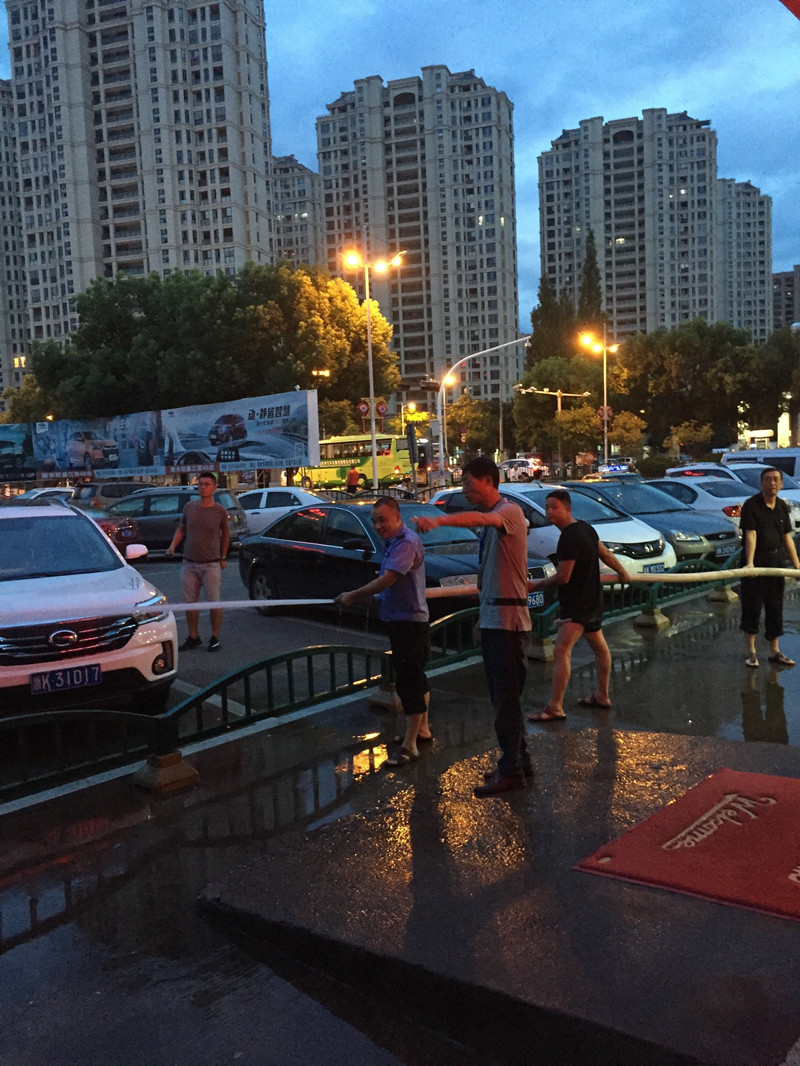 由于白天旅客進(jìn)出較多,不方便沖洗,志愿者們就選擇客流相對(duì)少的時(shí)間傍晚下班時(shí)間,他們拿來(lái)掃把、水帶,對(duì)南門(mén)周邊的場(chǎng)地進(jìn)行了徹底的沖洗。對(duì)一些“疑難雜癥”如油漬多的地面,隊(duì)員們就灑上洗衣粉,用長(zhǎng)柄刷子刷洗后,再用水沖洗干凈。一個(gè)多小時(shí)后,夜幕已經(jīng)降臨,但看著變得更加整潔的地面,志愿者們依舊持續(xù)工作著。