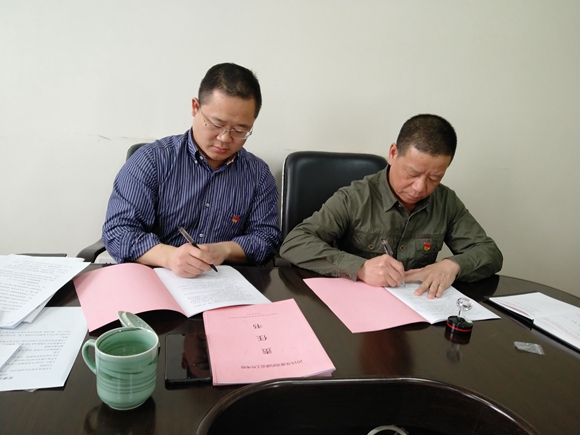 圖為集團(tuán)公司黨委與黨辦及各黨支部簽訂《黨的建設(shè)工作考核責(zé)任書》