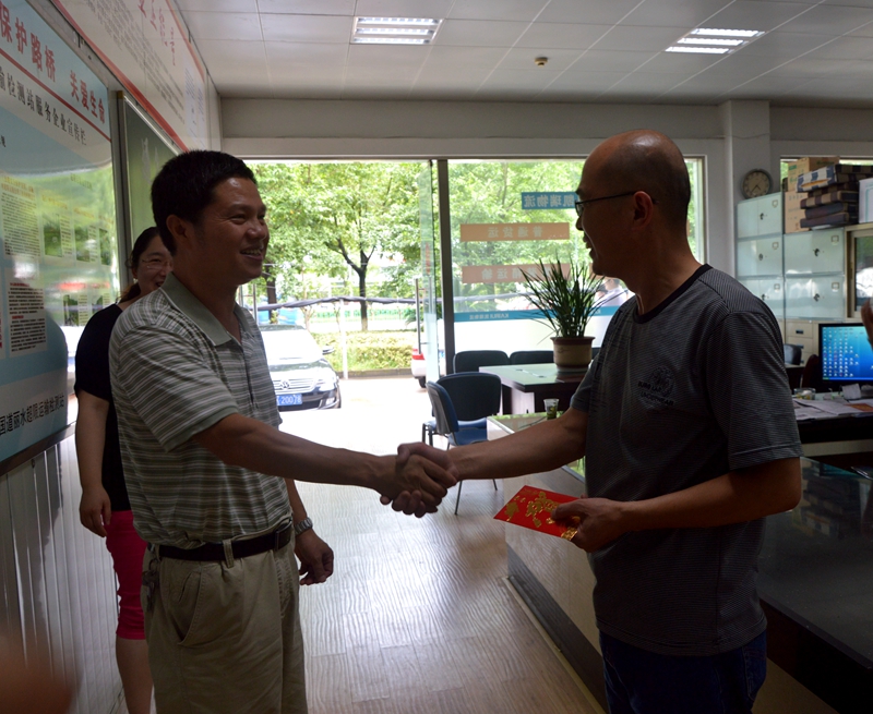 7月2日下午,市直機(jī)關(guān)黨工委副書(shū)記陳官雷一行慰問(wèn)公司困難黨員陳洪達(dá),陳副書(shū)記向陳洪達(dá)送上了黨員節(jié)日的問(wèn)候,并鼓勵(lì)他早日戰(zhàn)勝困難。