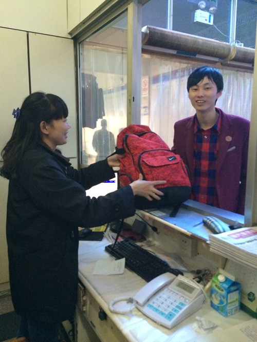 “您好,這里是客運東站服務處,您落在車上的背包我們已經(jīng)幫您找到了,請您有空的時候過來取?!狈?組組員李一斌平靜中帶點興奮地說。