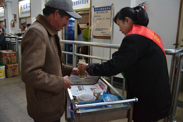 1月27日凌晨,一場(chǎng)不期而至的冷空氣光顧山城麗水,氣溫明顯下降。一大早,東站“流動(dòng)之家”服務(wù)班的工作人員就準(zhǔn)備好熱氣騰騰的茶水,穿梭于候車室免費(fèi)為旅客送上,井然有序的候車室里,彌漫著濃濃的暖意。